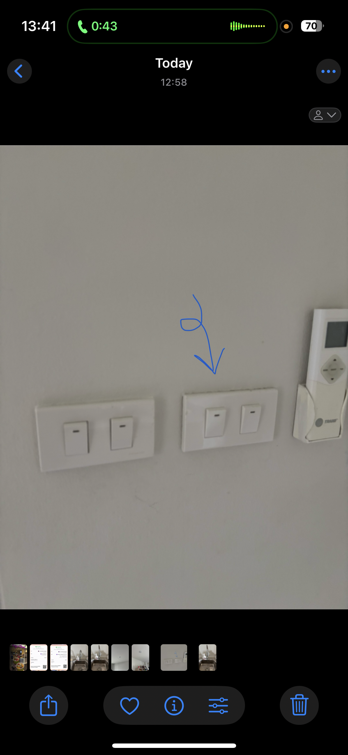สวิตช์ไฟที่ 3 (ดังแนบ) เปิดไม่ติด ทำให้หลอดไฟทั้ง 2 หลอดที่ต่อกับสวิตช์นั้นเปิดไม่ได้ รบกวนช่วยเช็คหน่อยครับ |